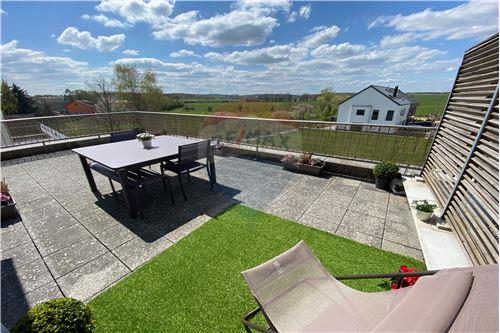 RE/MAX spécialiste de l'immobilier au Luxembourg, vous propose à la vente ce duplex d'excellence situé à Capellen. Duplex à vendre d’une surface de 121m2 situé au 1er et 2eme étage d’une maison bi-familiale. Le bien se situe dans un quartier calme, résidentiel et familial à 3 minutes à pied de la gare de Capellen (Ligne CFL 50 à seulement 2 arrêts de l’Ecole Européenne et 15 minutes de Luxembourg Gare Centrale) + accès Bus + pédibus (crèches et écoles à proximité) + A6 sortie Capellen. Il se compose comme suit : hall de nuit qui dessert 2 chambres (dont une suite parentale). Une salle de bain et une salle de douche. La pièce de vie d’une surface de ±33m2 se compose d’une cuisine ouverte (Kichechef) et d’un espace salon/salle à manger avec parquet massif, exposé plein sud. Le Duplex est complété à l’étage par un salon TV et pièce de télétravail avec parquet massif, qui peut facilement être aménagé en chambre parentale, avec accès direct sur une grande terrasse de 60m2 exposée plein sud. Les atouts de ce duplex sont sa localisation (commune de Mamer), sa vue dégagée sur une zone verte non-constructible, et sa luminosité (exposition plein sud). Le bien se complète d’une cave/buanderie et d’un garage + 2 emplacements extérieurs. Chauffage au gaz / pas de syndicat de copropriété (charges faibles) / pas d’ascenseur. Disponible Juin-Juillet