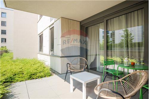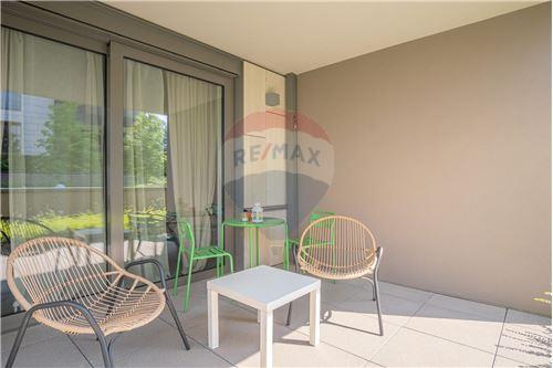 Cet appartement situé au rez-de-chaussée offre un hall d'entrée avec WC séparé, une spacieuse pièce à vivre donnant accès à une grande terrasse, Une cuisine entièrement équipée (réfrigérateur, congélateur, lave-vaisselle, four, four à micro-onde, plaque de cuisson et hotte), De nombreux rangements, 1 chambre avec un immense dressing, ainsi qu'une salle de bain.